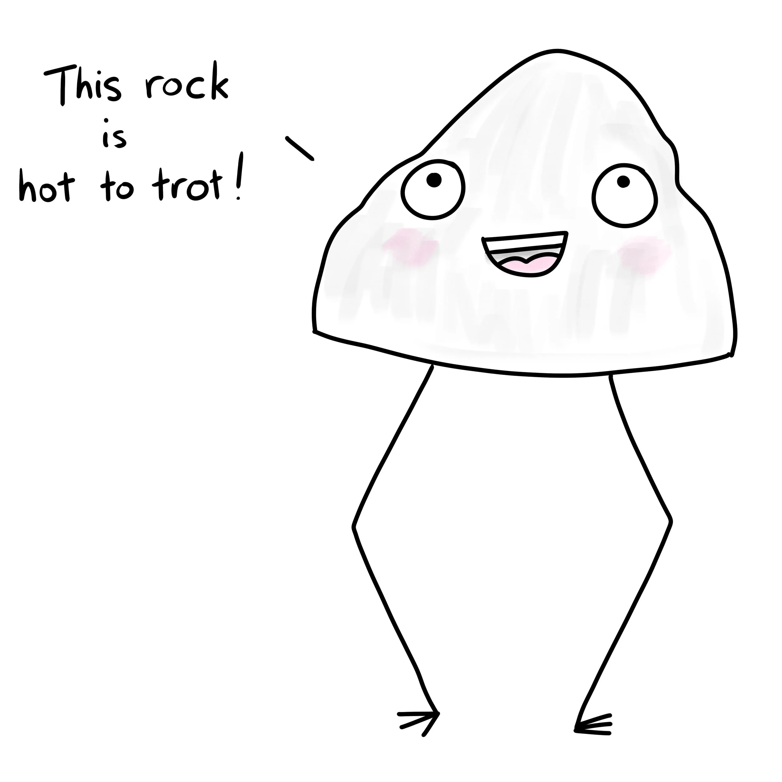 So the gnome did some gnome magic and wished up Geoff some enormous spindly legs. That wasn’t what Geoff was talking about. He just wanted to be a bigger rock. But the legs were ace and now Geoff could run about all he wanted. It was great.