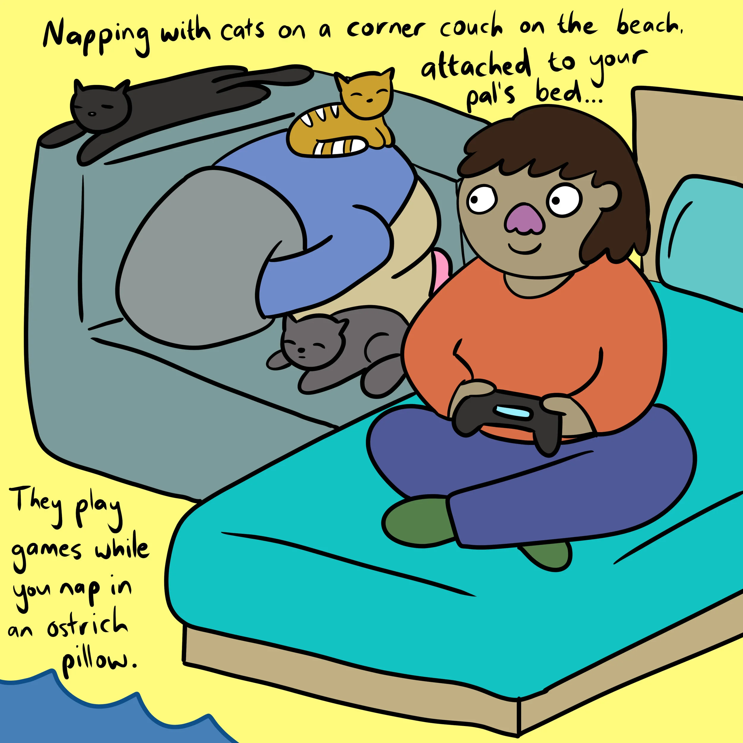Welcome back to Nice Times Club, gang! It's so lovely to have you. I've been building a sundeck on the Nice Times Clubhouse to get ready for the warmer weather and it's gonna be sick. Abigail's already set up her nest in the corner.