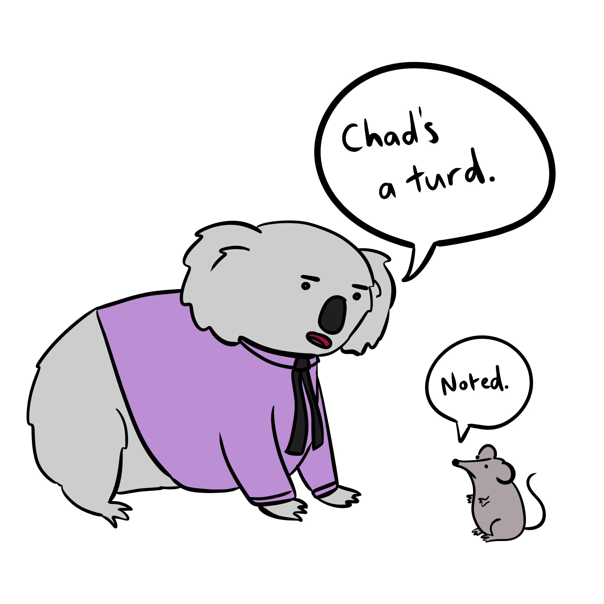 Gertie felt herself fill with such a rage that her fur went from grey to pink to a furious red. Gertie was not Chad's "love". She was a very serious business lady who was very good at business. Her anger was so total that she didn't even feel her paws typing out this response: